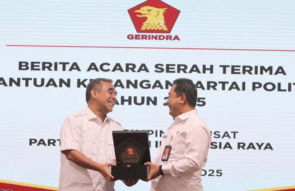 Kemendagri menyerahkan bantuan keuangan ke Partai Gerindra Tahun 2025 sebesar Rp20,071 miliar.