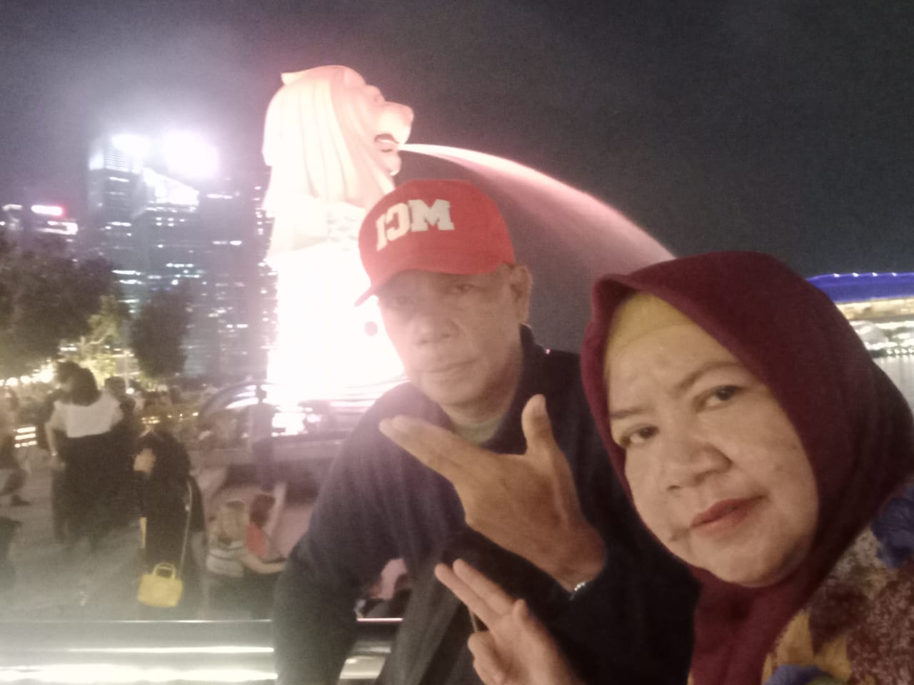 Sebelum naik kapal pesiar, malam Senin mengunjungi ikon Singapura, yaitu patung Singa yang tampak terlihat lebih indah, karena didukung dengan warna-warni cahaya lampu leser yang begitu apik di pinggir laut. Meski larut malam, ternyata banyak pelancong datang ke tempat, ya seperti biasa keclek sana keclek sini, berfoto ria alias selfi-selfian.
