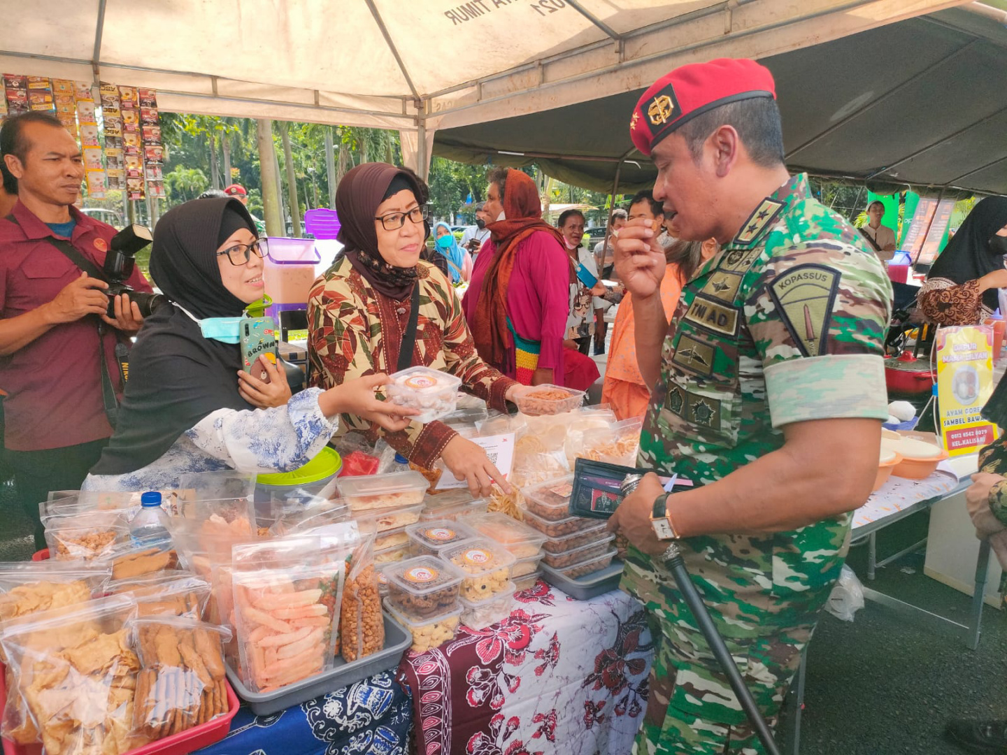 ” Pelaku UMKM harus mampu menjadi penggerak pemulihan ekonomi nasional sehingga menjadi kekuatan pertahanan yang disiapkan secara dini seperti yang kita laksanakan Bersama saat ini,” jelas Danjen Kopassus Mayjen TNI Iwan Setiawan dalam sambutannya dihadapan para pelaku usaha.