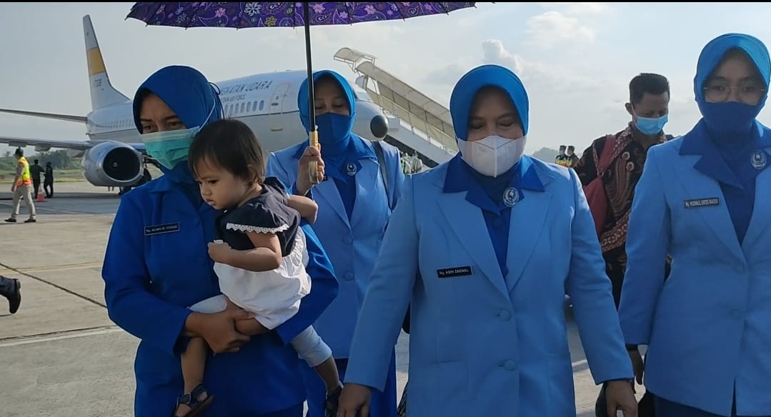 PANGLIMA TNI Marsekal TNI Hadi Tjahjanto, S.I.P., mengerahkan tiga unit pesawat TNI AU Boeing 737 untuk membawa 184 orang keluarga ABK KRI Nanggala-402 menuju Banyuwangi dalam rangka melaksanakan kegiatan tabur bunga di Perairan Utara Pulau Bali, Jumat (30/4/2021). Pesawat tersebut diberangkatkan pukul 06.35 WIB dari Lanudal Juanda dan tiba di Bandara Udara Blimbing Sari Banyuwangi pukul 07.00 WIB. Selanjutnya pukul 08.15 WIB Kepala Staf Angkatan Laut Laksamana TNI Yudo Margono, S.E., M.M. beserta 184 orang keluarga ABK Nanggala-402 berangkat menuju tempat tabur bunga dengan menggunakan KRI dr. Soeharso-990 berangkat dari Dermaga Pelabuhan Ketapang Banyuwangi. [puspen TNI/sir]