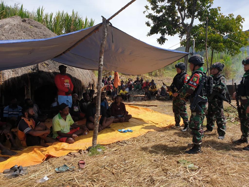 Satgas Pamrahwan Yonif RK 751/VJS memenuhi panggilan dalam undangan adat Bakar Batu yang dipimpin oleh Letda Chb Adi Catur beserta 7 personel lainnya.