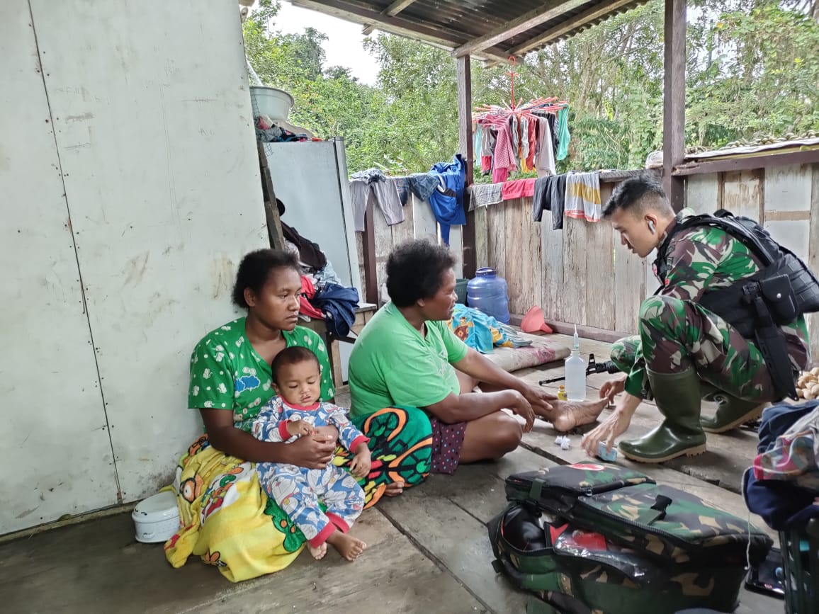 POSKOTA.CO -Guna menjalin silaturahmi Satgas Pamtas RI-PNG Yonif Mekanis 126/KC Pos Kalibom laksanakan Komsos Kreatif melalui pengobatan secara langsung ke rumah warga binaan di Kampung Kalibom, Distrik Waris, Kabupaten Keerom.