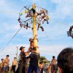 BOGOR – Warga berusaha memanjat pohon pisang licin yang menyediakan berbagai hadiah menarik mulai dari makanan hingga uang ratusan ribu, saat perlombaan