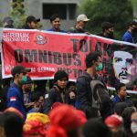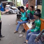 Sosialisasi himbauan Kamseltibcar Lantas dan Protokol Kesehatan Pencegahan Covid-19 kepada pengemudi ojek di Jl. Mandala Tengah, Tomang, Jakbar,Selasa(14/7/20).