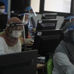 Polri Sat Lantas Jakbar, Selasa(7/7/20) melakukan Himbauan Protokol Kesehatan di Puskesmas Kebon Jeruk Jakbar guna cegah penyebaran Virus Covid-19. (tmc)