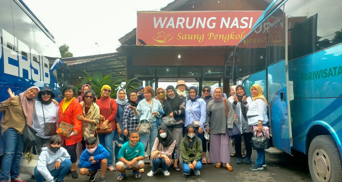 Rombongan berangkat menuju Bandung menggunakan bus pariwisata carteran, usai Salat Subuh. “Sewa bus dan makan siang dibiayai oleh Mbak Mona dan selebihnya swadaya masing-masing peserta,” kata Ira sambil menambahkan kegiatan ini juga untuk meningkatkan kerukunan sesama warga. Kalau sesama warga bisa hidup rukun dan komunikatif, menjadi betah tinggal di rumah. “Selain itu para peserta juga ingin menikmati hangatnya mandi air belerang yang menyehatkan di Ciater, sekaligus acara kulineran dan belanja oleh-oleh,” tambah Ira.