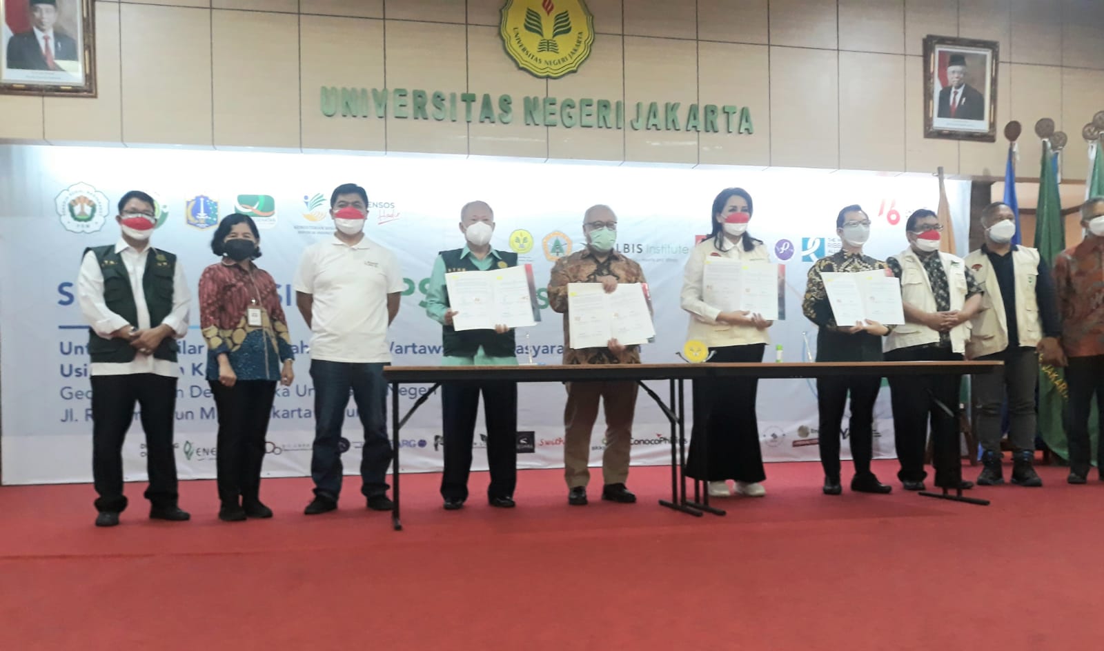 Senada juga disampaikan Rektor UNJ, Prof Komaruddin. Dalam sambutannya, Rektor mengatakan percepatan cakupan vaksinasi Covid-19 merupakan upaya yang harus dilakukan pemeirntah agar segera mencapai target jumlah penduduk yang memperoleh vaksinasi. Jika target vaksinasi sudah tercapai, maka herd immunity bisa terbentuk.