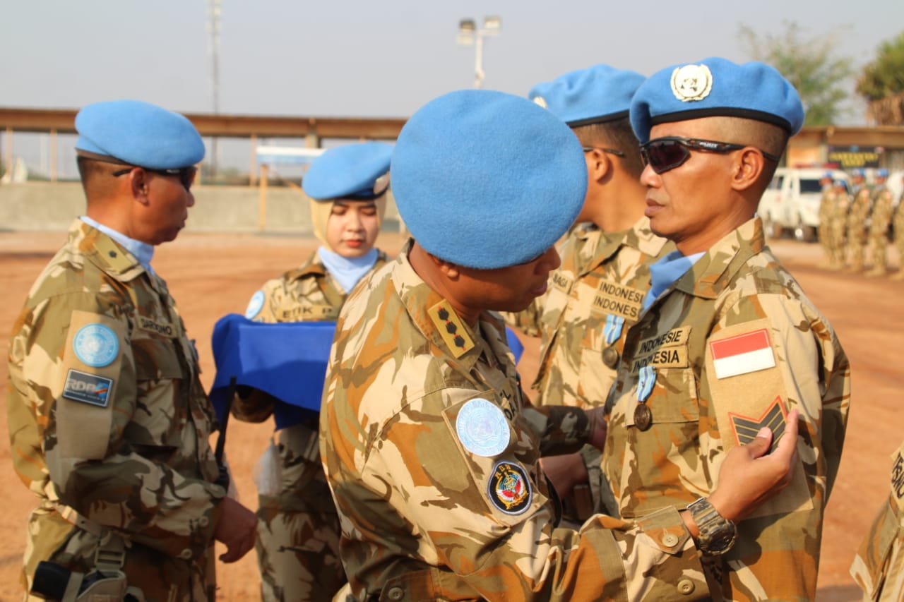 Upacara Medal Parade penyematan medali PBB diikuti oleh seluruh personel Satgas Indo RDB dilanjutkan dengan acara penyematan tanda pangkat baru bagi 115 prajurit yang naik pangkat periode 1 Oktober 2020. Komandan Satgas Indo RDB juga memberikan piagam penghargaan bagi personel yang telah memberikan kontribusi aktif dan berprestasi untuk satgas. (puspen tni/sir)