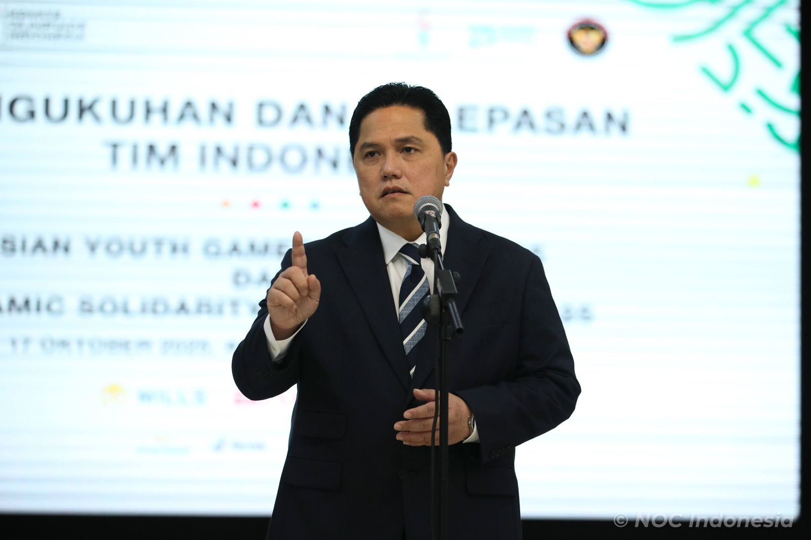 Menpora Erick mengucapkan selamat kepada Jonatan Christie yang berhasil mengharumkan nama Indonesia setelah pada pertandingan final berhasil mengalahkan unggulan pertama asal China, Shi Yu Qi dengan skor 13-21, 21-15, 21-15 di Jyske Bank Arena, Minggu (19/10/2025) kemarin.